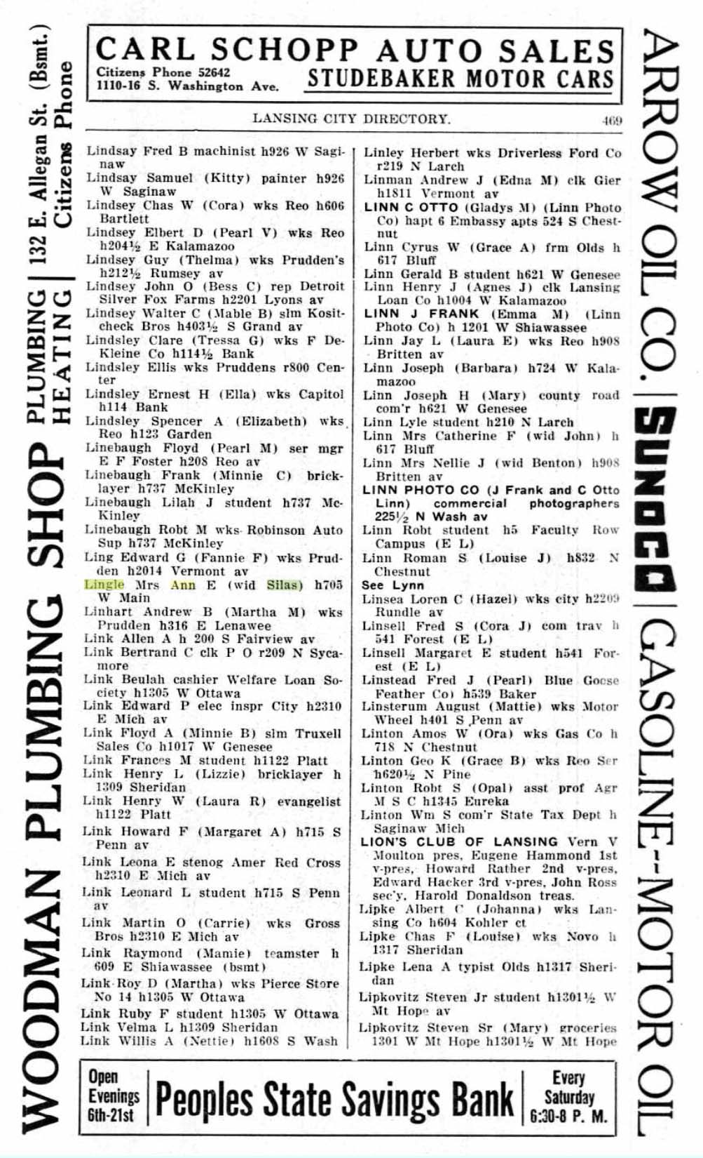 Resided in 1916 at 210 S Larch St, Lansing, MI
