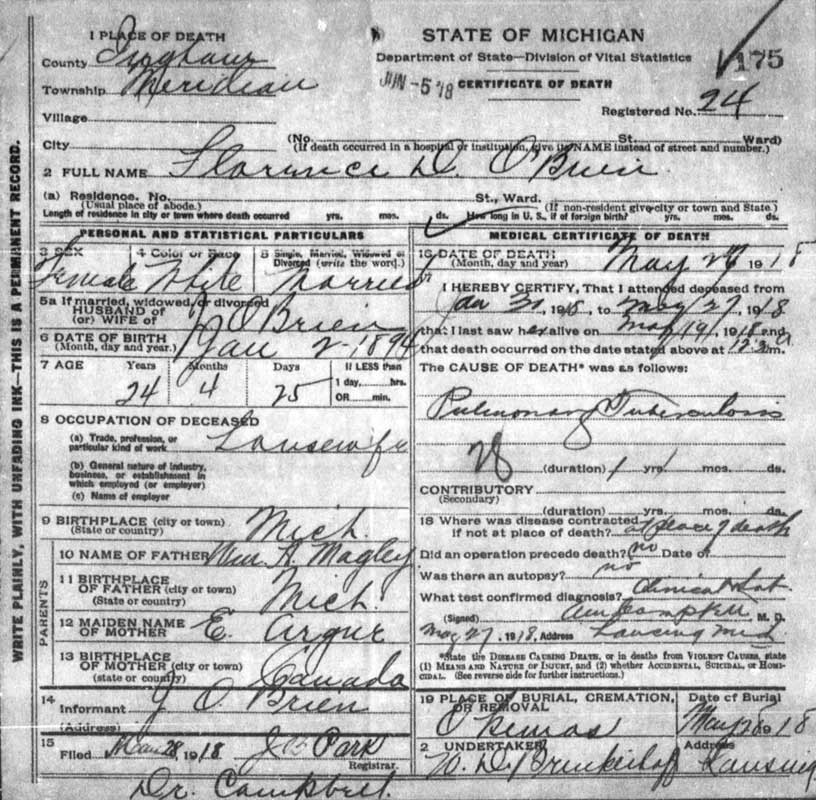 Burial monument, Resurrection Cemetery, Chesaning, MIObituary: