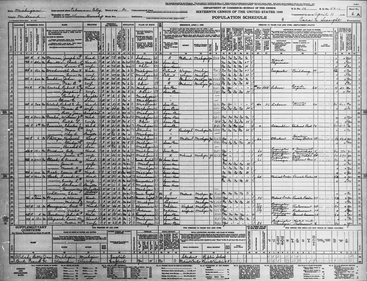 1940 Census, Saginaw, Saginaw, MIBurial headstone, Mount Olivet Cemetery, Saginaw, MIObituary: