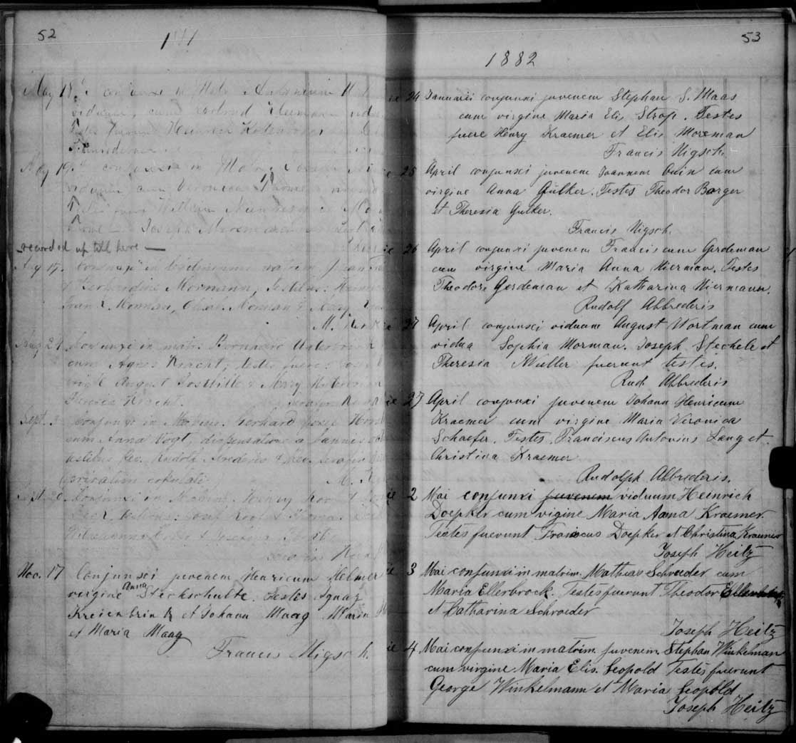 Baptismal Record, St John the Baptist Catholic Church, Glandorf, OHRecord of Marriage, St. John the Baptist Catholic Church, Glandorf, OHRecord of Marriage, State of Ohio1870 Census, Greensburg, Putnam, OHBurial monument, St Vincent De Paul Cemetery, Shepherd, MIObituary: