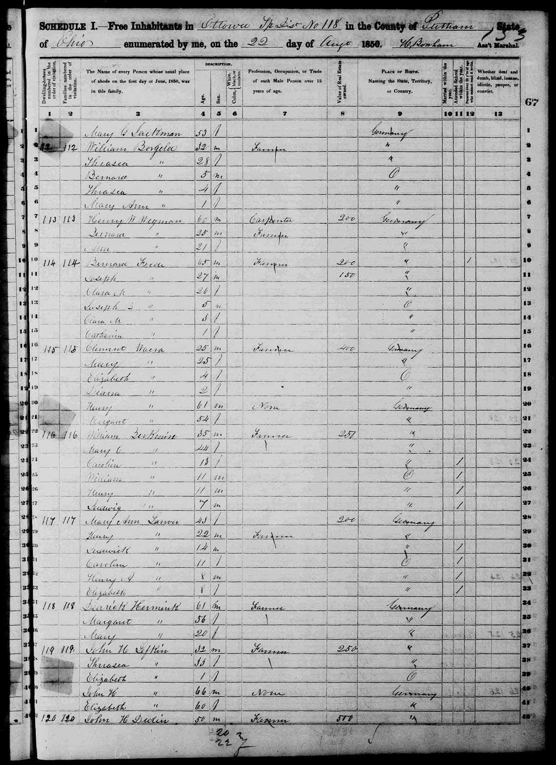 1940 Census, Ottawa, Putnam, OH