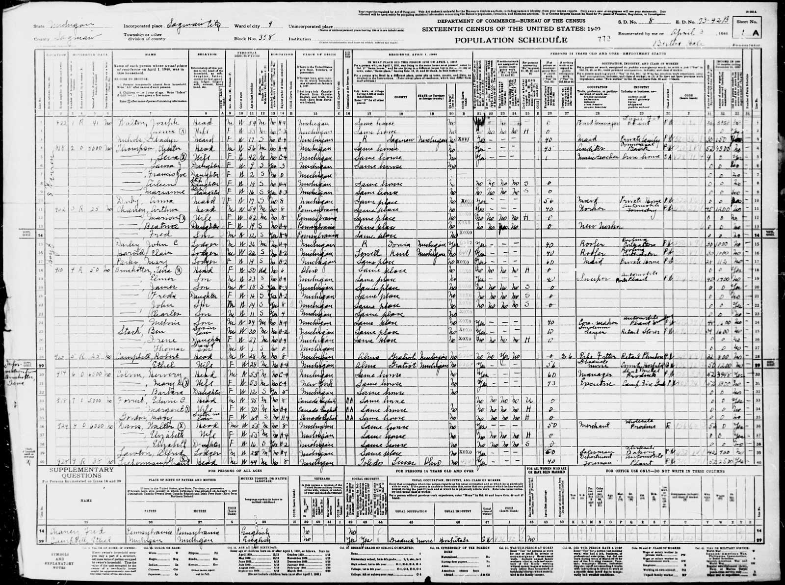 1930 US Census, St Louis, Gratiot County, MI1940 Census, Alma, Gratiot, MIBurial headstone, Saint Patricks Cemetery, Elwell, Gratiot, MI