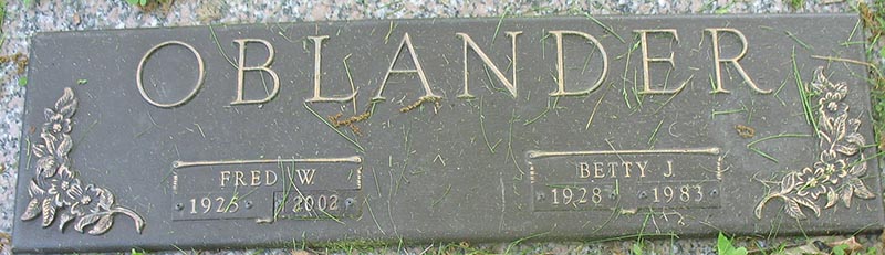 Oblander Frederick William [Male] b. 7 AUG 1925 Blumfield, Saginaw, MI - d. 2 MAR 2002 Saginaw, MI