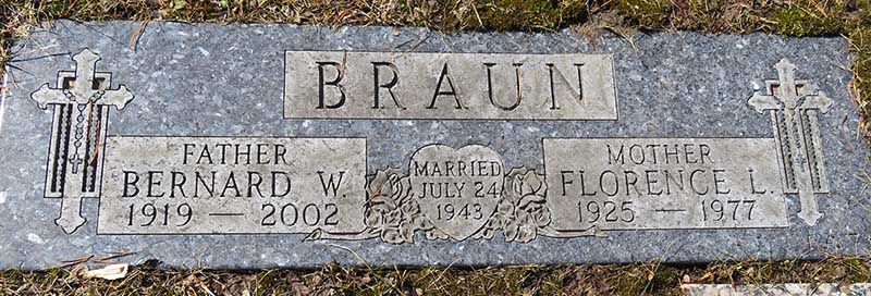 Braun Bernard W [Male] b. 10 MAY 1919 Allen, Hillsdale, MI - d. 24 FEB 2002 Mid-Michigan Medical Center, Midland, MI